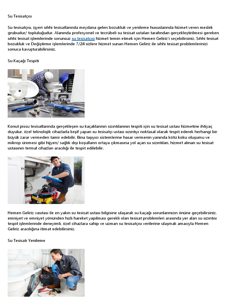 En yakın su tesisatçısı tıkanıklık açma gider açma su kaçağı tespiti petek temizliği tüm tesisat işleri için 7 24 hizmetinizdeyiz.